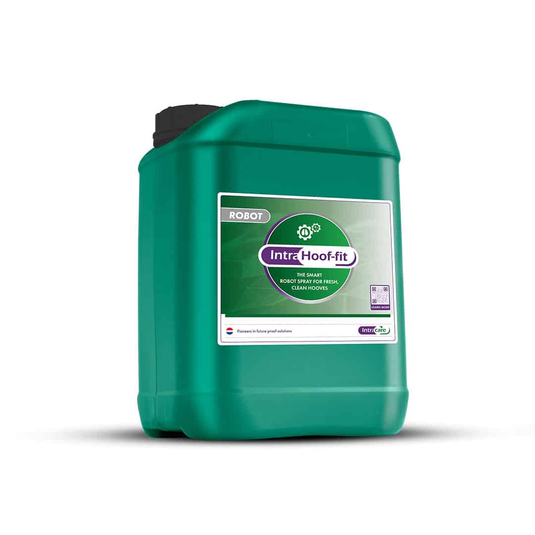 Intra Hoof-fit Robot is een unieke ontwikkeling met een speciaal gecreëerd ‘parel-netwerk’ om de werkzame stoffen homogeen in oplossing te houden en ervoor te zorgen dat het product stevig aan de hoef blijft plakken. Spot-sprayen op de hoef garandeert een lange contacttijd bij een lagere dosering. De hechting is uitstekend, zelfs op een natte huid of hoeven.